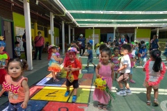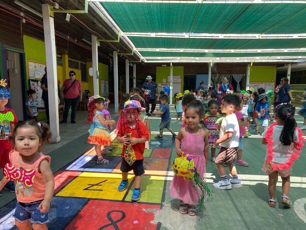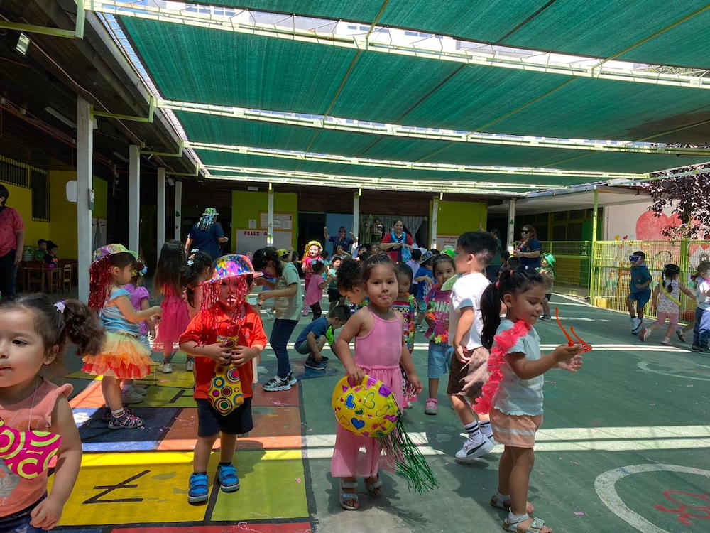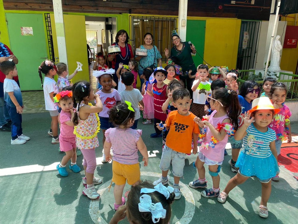El lunes 30 de diciembre, los niños y niñas del Jardín Reina de la Paz vivieron una fiesta inolvidable para cerrar el año. Las educadoras les invitaron a pensar en el año que habían vivido en su jardín y qué cosas agradecían y las cosas que más repitieron fue que daban gracias por el lindo jardín al que van, por el patio nuevo y por las tías.